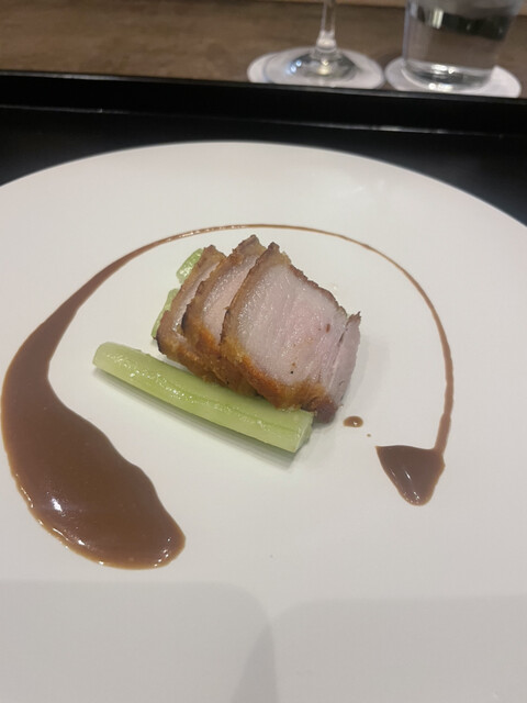 雲丹と黒トリュフのコクを山椒、ネギ、生姜を叩きまくったソースが引き締め。