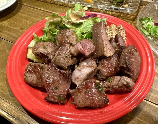 牛ハラミとハツのガーリックソテー1150円。