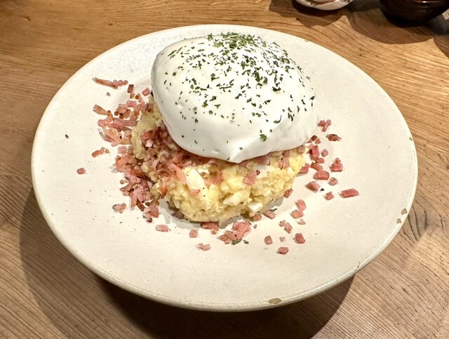 おしゃれな見た目。自家製のマヨネーズの下にポテトとベーコンの細切れ。これをいろんな配分で混ぜて食べるのが楽しい。マヨネーズがまた酸味抑えめでメレンゲのようなクリーミーなマヨで絶品、!このマヨでいろんなものを食べてみたい。