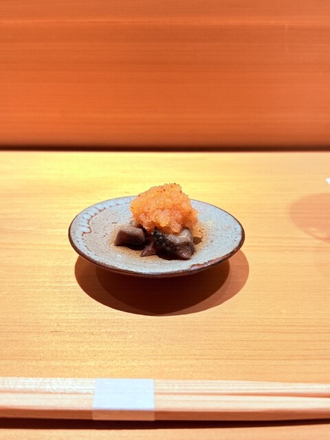 茶振でさっと火を通したなまこでコリコリ食感が残りピリッと辛いもみじおろしがアクセント