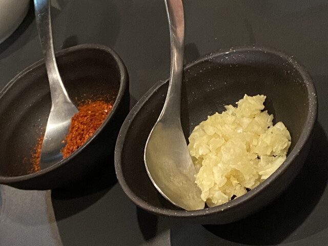 右から赤身用、レモン、青唐辛子 ヤンニョム