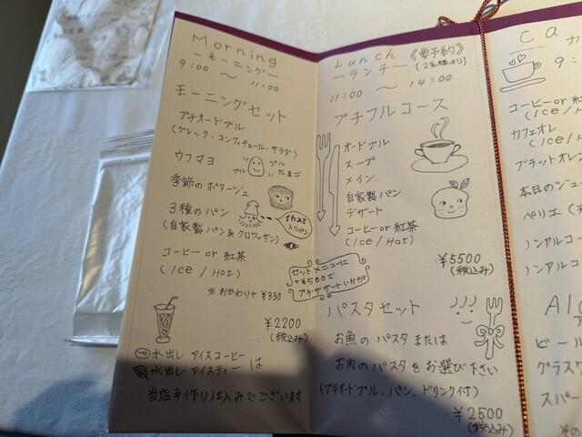 lunchメニューは、プチフルコースとパスタランチ。