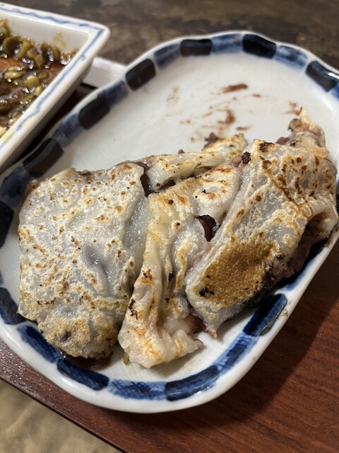 キムチちぢみ→辛くなくもちもちしてて美味しい。つけだれ付けていただきました。