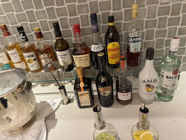 お酒もワイン、赤白、スパークリング、ビールは数種類(プレモル、バドワイザー)、ソフトドリンクはコーラ、ゼロコーラ、オレンジ、りんご、グレープフルーツジュースなど充実のラインナップ。