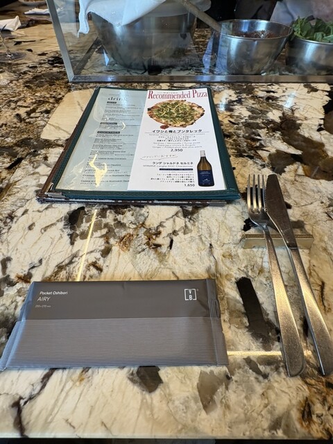 平日11時55分に予約無しで訪問 13時までを条件に5分待ってカウンター席に 2種類を味わえるマルゲリータ&マリナーラ ハーフ&ハーフとコカコーラゼロを注文 店内は予約の外国人が多かった