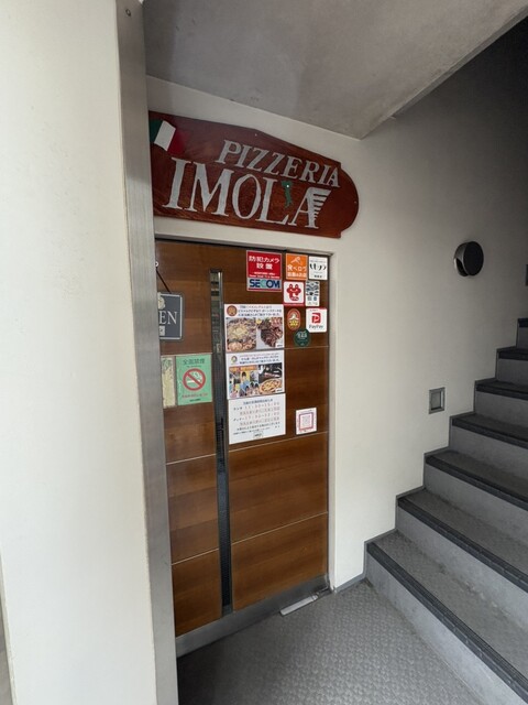 奥沢駅より徒歩1分にあるPIZZERIA IMOLA 週末ランチで訪問 ランチメニューより、選べるピッツァ・パスタランチを注文 ピザの回りのコルニチョーネ(額縁)は分厚く食べ応えあり 一部持ち帰りに