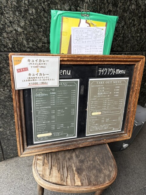 平日11時40分訪問 前のお客と入替で直ぐに入店 人気のボンヌカレーと、月水金かつ数量限定のキュイカレーを注文 キュイカレーは売り切れることもあり11時50分過ぎ入店のお客さんは第二候補も聞かれていた