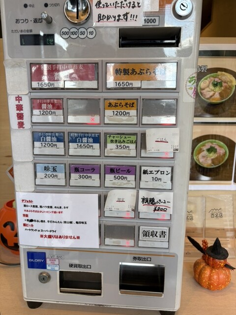 柴崎駅より徒歩4分にある手打麺祭かめ囲 週末は長い列ができることがあるとのことで、500円の手数料を支払い5日前にTableCheckで予約 入り口右の券売機より特製手打中華蕎麦と特製あぶらそばを発券