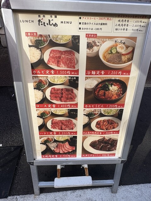 大塚駅徒歩2分にある焼肉冷麺だいじゅ 3日前に食べログのネット予約でランチ訪問 1番人気のカルビ定食とイチオシの冷麺定食と迷ったが、今回はカルビ定食で 追加でスタミナレバーを注文