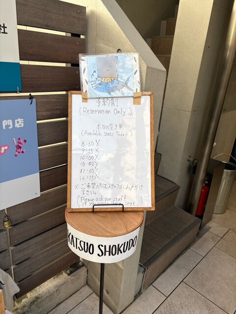 1週間前にTableCheckで予約して訪問 料理はかつお食堂の定食2200円の一本のみ からあげやわさびなどの追加あり 訪問時は自分以外全員外国人 渋谷駅新南改札利用が便利