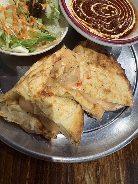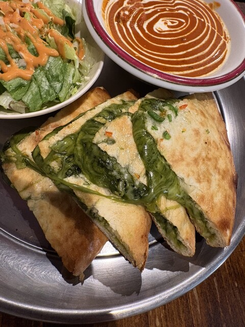 新宿駅東口徒歩2分ほどにあるアジアンダイニング ヤミー チーズナンの種類が豊富で全部で9種 チーズナンセット1300円にプラス料金で、明太子ナンと抹茶チーズナンに変更 食べきれないナンは持ち帰り可能
