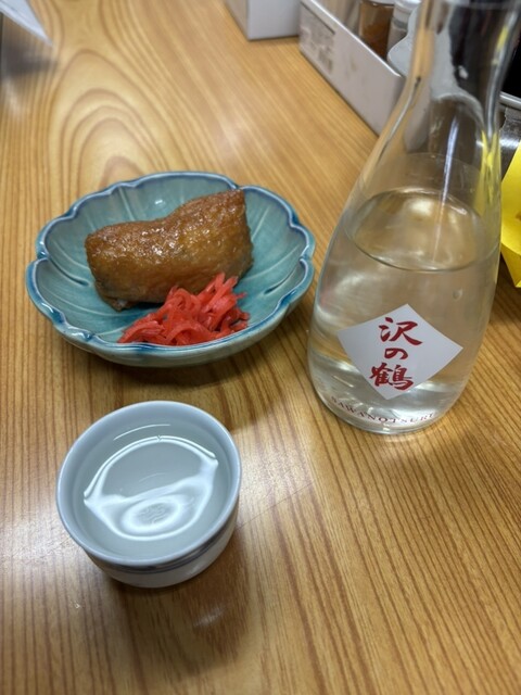 五目いなり190円をつまみに日本酒あつかん500円をちびりちびり