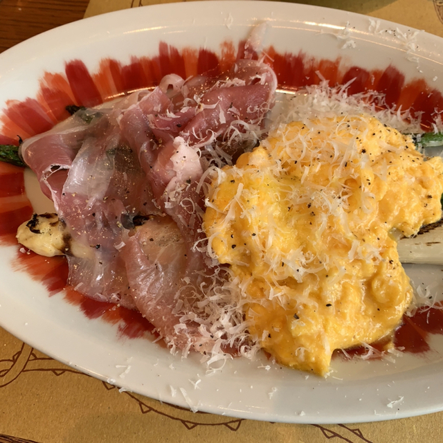 黒トリュフとパルミジャーノがグリルした旬のアスパラガス(九州産)を引き立てていていて、贅沢な一品でした。