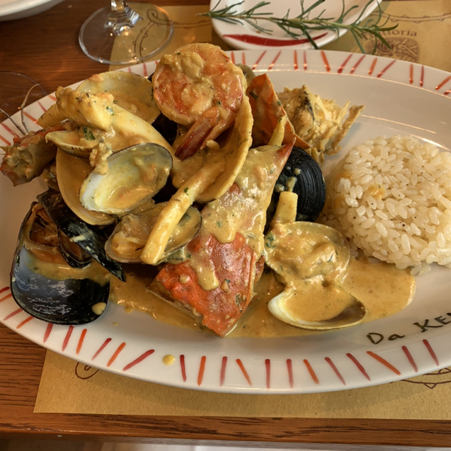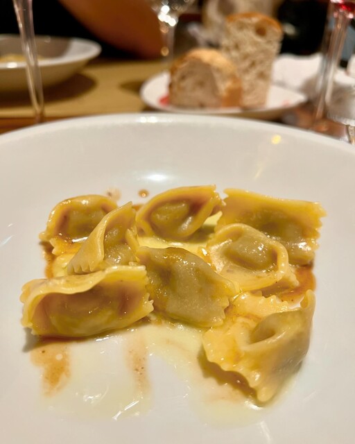→硬くなったトスカーナパン水に浸して、ニンニクや唐辛子で炒めてトマトで煮込んだトスカーナパンを使ったお粥みたいな郷土料理。魚介多めの冷菜の流れだったので、ここでトマトベースのパッパ・アル・ポモドーロの温かくまろやかな味が染みわたる感じ。
