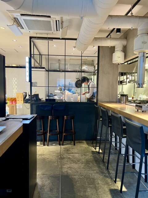 中に入ってぱっと厨房が目に入ってくる感じが、まるで海外のレストランに来たような非日常感。
