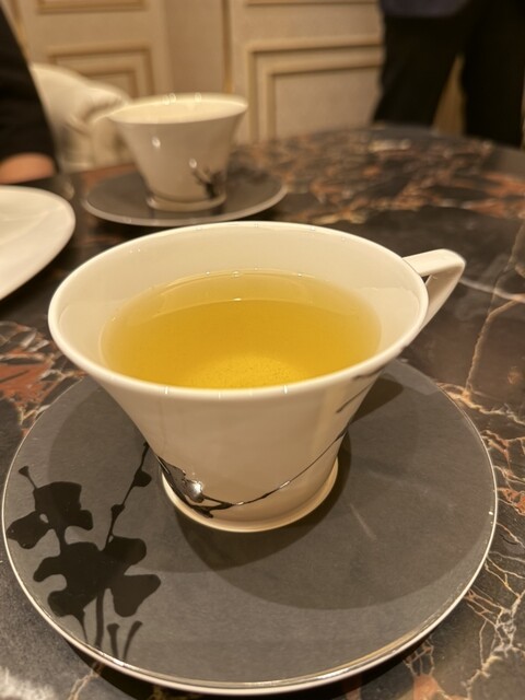 →食後のお茶はなんとも香り豊かな金木犀の緑茶。いつまでもこのアロマを香って寛いでいたいと思わせる、ほっとさせてくれるお茶。