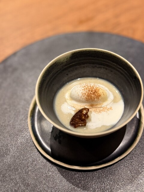 栗のスープの中に黒糖のゼリーが入っていて、シナモンが香る秋を感じるデザート。