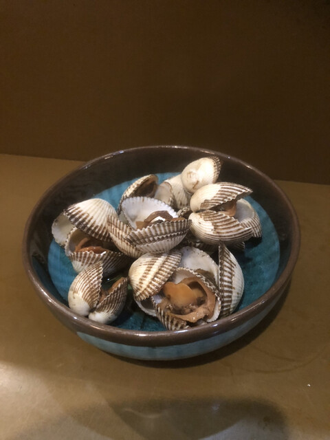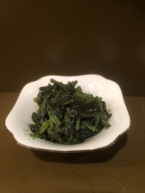 ほうれん草の胡麻和えと赤貝の炊いたやつをつまみに、チビチビ