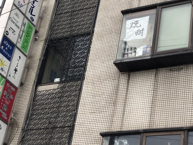 ビルには一応「きよ繁」の小さな看板はあるものの、お店の窓には「焼酎」としか書かれていない