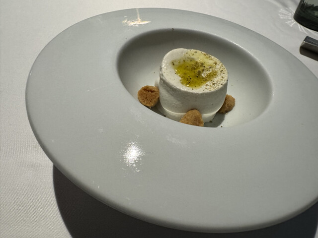 デザートに向かってトマトのゼリー的なもの、ブルーチーズのケーキ的なもの(この2つは1つずつでシェアしました)、メロンシャーベット的なもの、どれもこれだと説明ができないですが、楽しく食べられました。