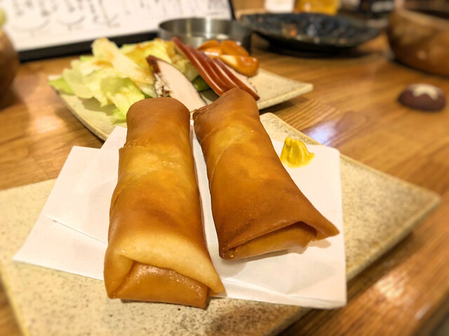 ザクッと上がった春巻きの皮とほっこり蒸し焼き状態になったささみ・トロリと溶けるチーズ・香りのアクセントにもってこい!な、しそ
