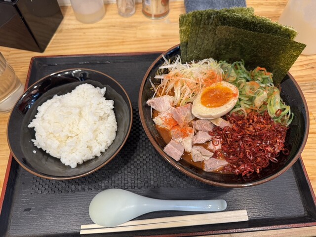 味噌ベースの甘味を感じながらも汗をかくほどの辛さの家系ラーメン。