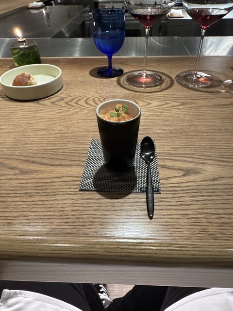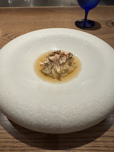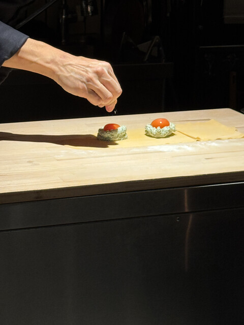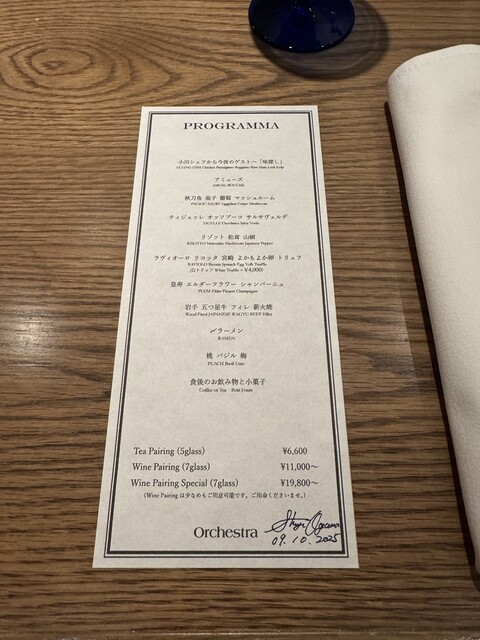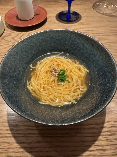 スープから始まり、アミューズ、さんま、ティジェッレ、リゾット、ラビオリ、フィレ、イタリアンでまさかの締めのラーメン。