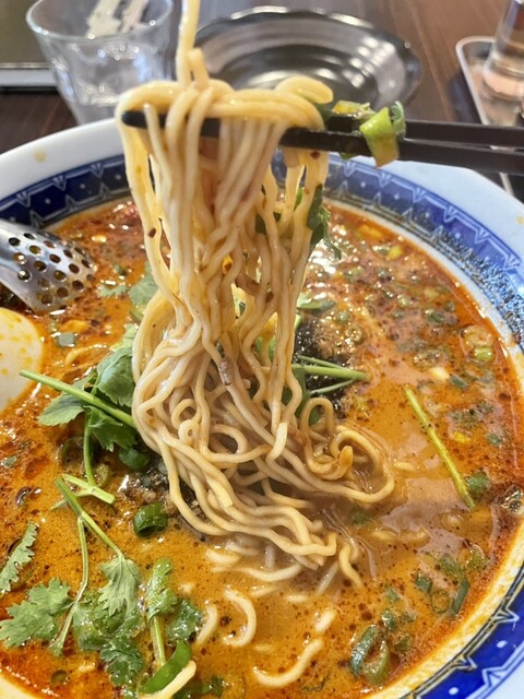 烈火担々麺(赤)細麺ストレート。店のおすすめは中細ちぢれだけど細麺が断然美味い。