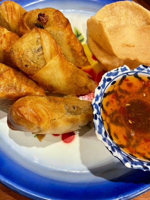 豚肉と胡麻のレモングラス揚げ(明らかに最後にオーダーするものではない。ボリューミー。美味は美味。レモングラスを揚げるとか、アリなんだ!)
