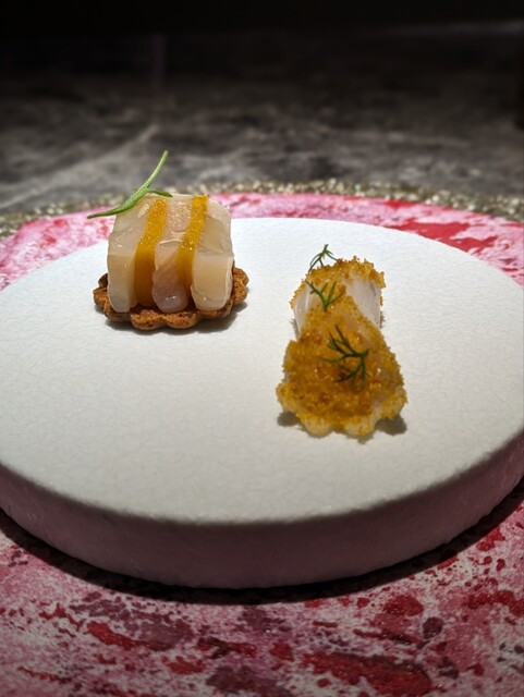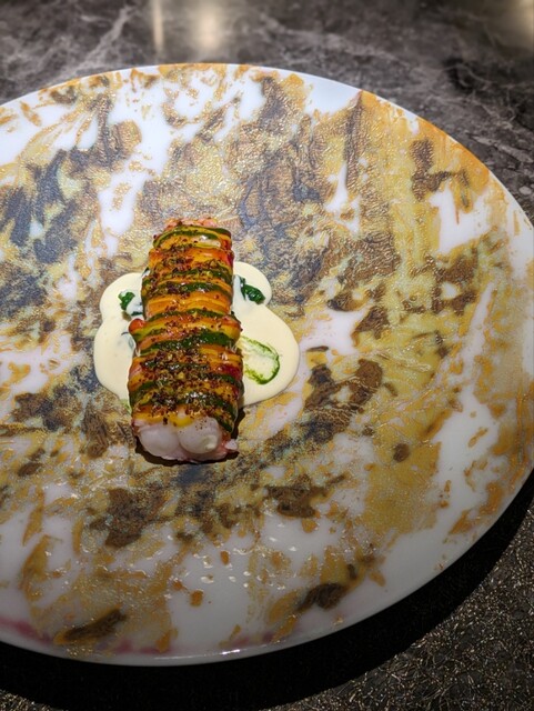 未来コーンと赤海老のタルタル、未来コーンのエスプーマ