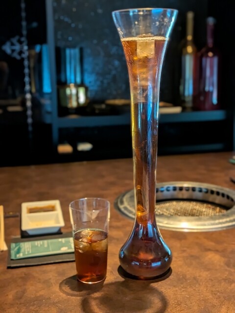まずは激長グラスのドリンクで乾杯(笑)。インパクト強め。