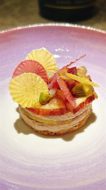 フォアグラの何か。ヒオウギガイみたいな飾りが美しい