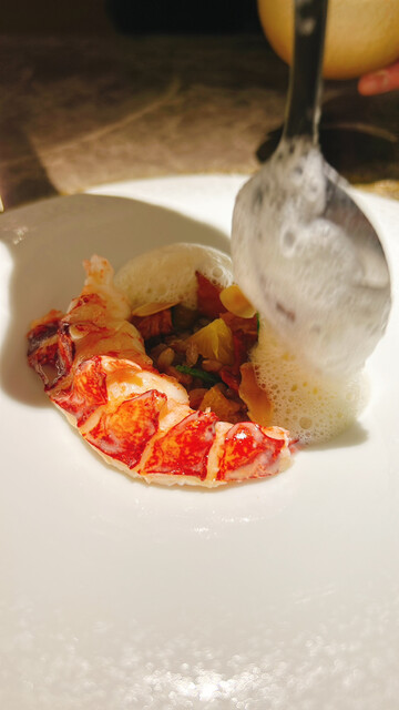 オマールブルーのリゾット。美味しい泡をかけてもらいます
