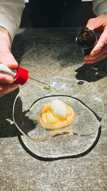 隠し味にブランデーをスポイトで供されます