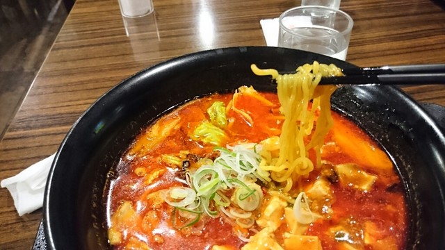 同僚が前に、麻婆豆腐麺頼んだら、微妙な顔をしていて、私の麻辣鉄人麺を食べたら、こっちがいいと言っていたし。