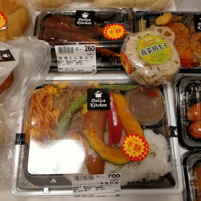 中日ビルを出て直ぐに、先程入ったデリカキッチンさんに入ると、なんと!50%引きに。