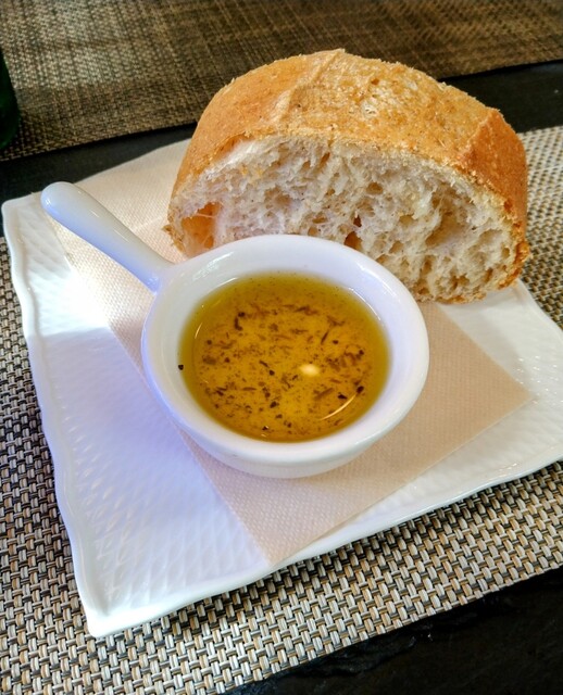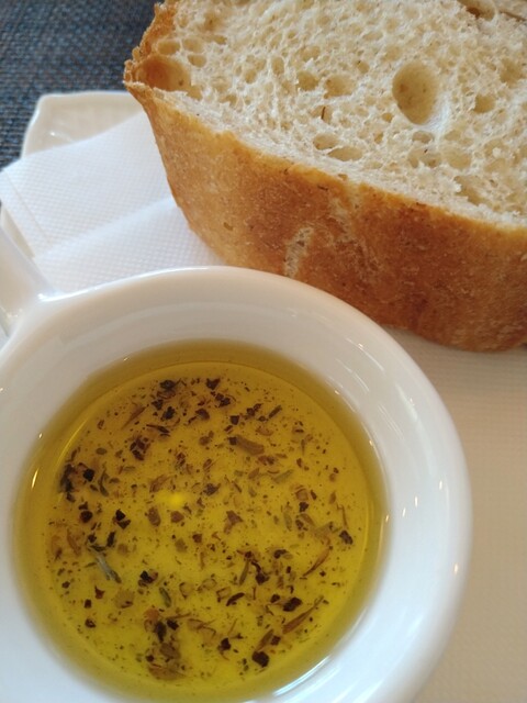 自家製オリーブオイルに自家製パン、お代わりしたので既にお腹は良い感じ。