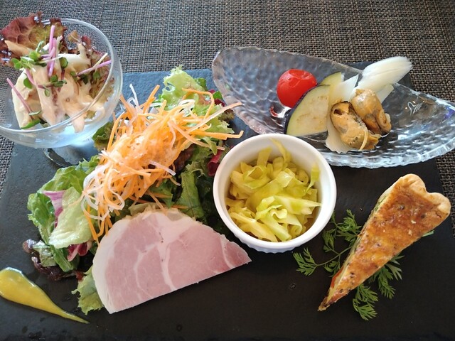 こちらの前菜プレートは野菜が盛り沢山♪チキンやキッシュ等などもあり、ボリュミー。