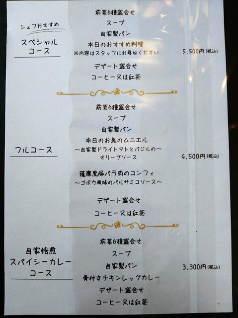 前菜、スープ、メインに自家製パンはお代わり自由♡ それにデザート盛り合わせに飲み物が付きます。