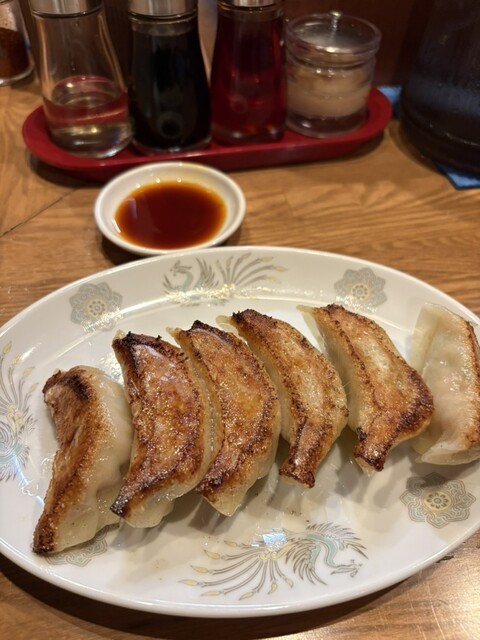 ギョーザ600円は、皮がもちもちの厚めで、一粒が大きく6個もあるのでチャーハンとセットにすると苦しいですわ。