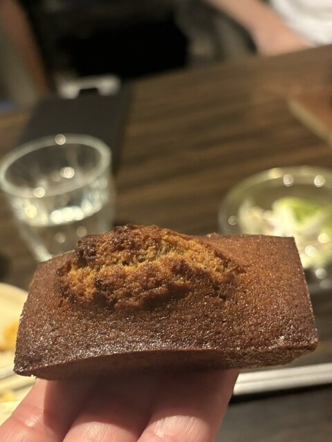 店内でひとつひとつ丁寧に焼き上げられる名物フィナンシェ。外はさっくりと香ばしく、中はしっとりと優しい口どけ。広がる焦がしバターの香りが幸福感を運んでくれる。