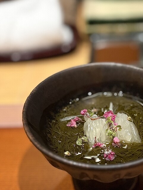 コースの途中で体をそっと落ち着けてくれるような、温かみと華やぎのあるお椀です。