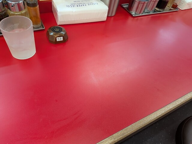 新しい店舗ですから、カウンターの色がくすんでいないで、赤色が鮮やかですね。
