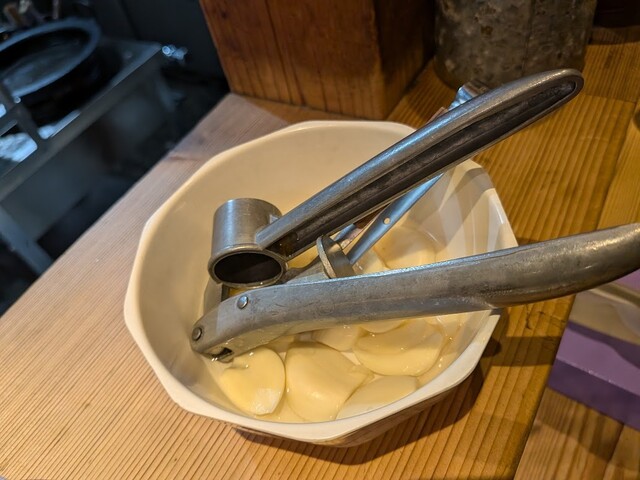 ニンニクも置いてあって、自分でつぶしていただく方式でした。
