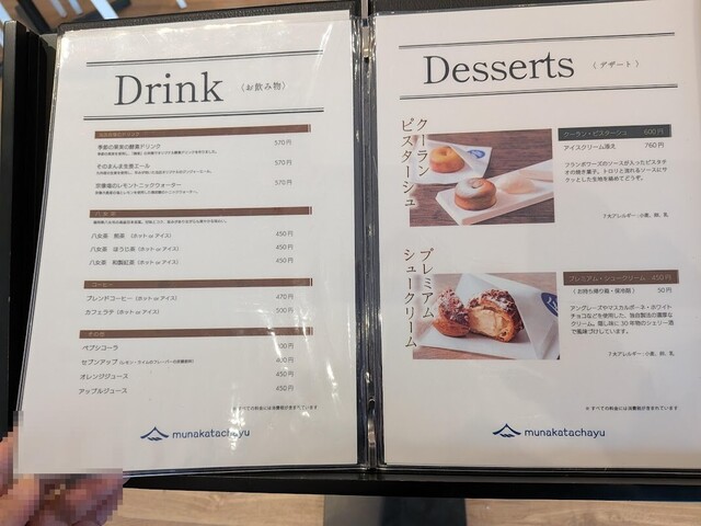 飲み物は400円からあって、プレミアムシュークリームなどもありましたよ。