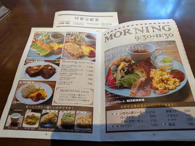 メニューは、モーニングメニュー、ランチメニュー、オールデイメニュー、冬限定ランチメニュー、スイーツメニューなどなどありました。