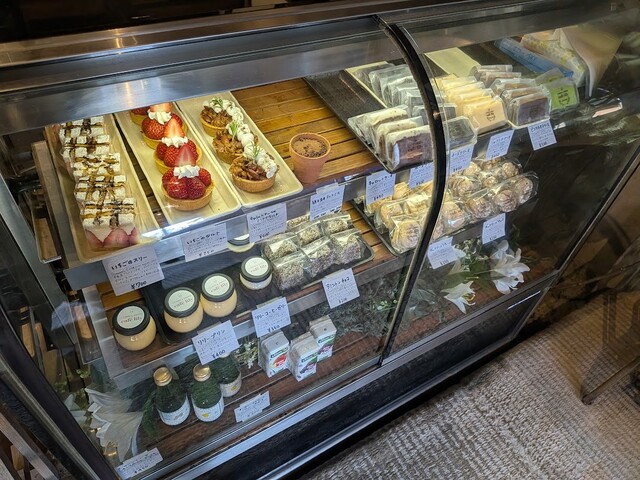 店内には雑貨なども売っていて、スイーツがショーケースに並んでいました。