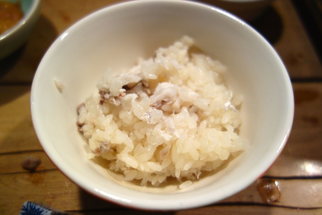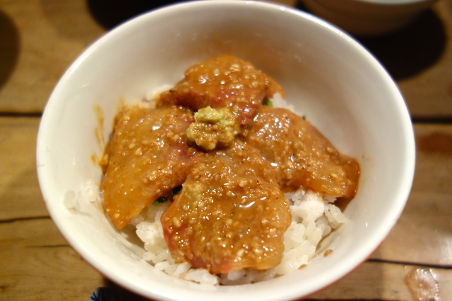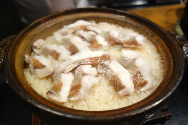 鯛めしに、鯛の刺身の胡麻味噌和えを乗せ…