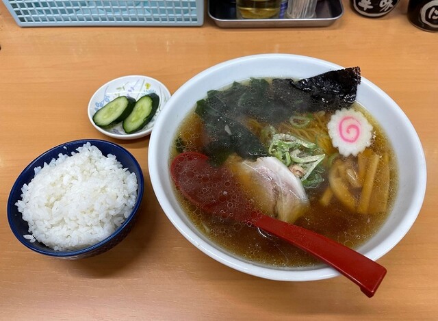地元で人気のお店で「ラーメンと半?ライス」を頂きました