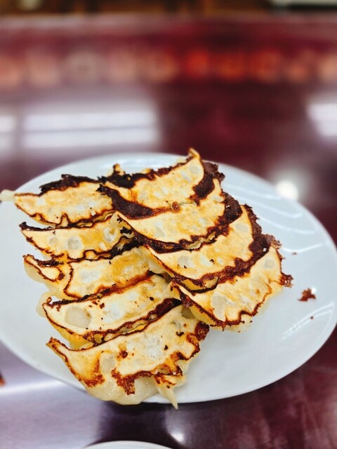 餃子:香ばしい焼き目に、中からジュワッと旨みが溢れる名物。町中華としてはトップクラスの完成度。